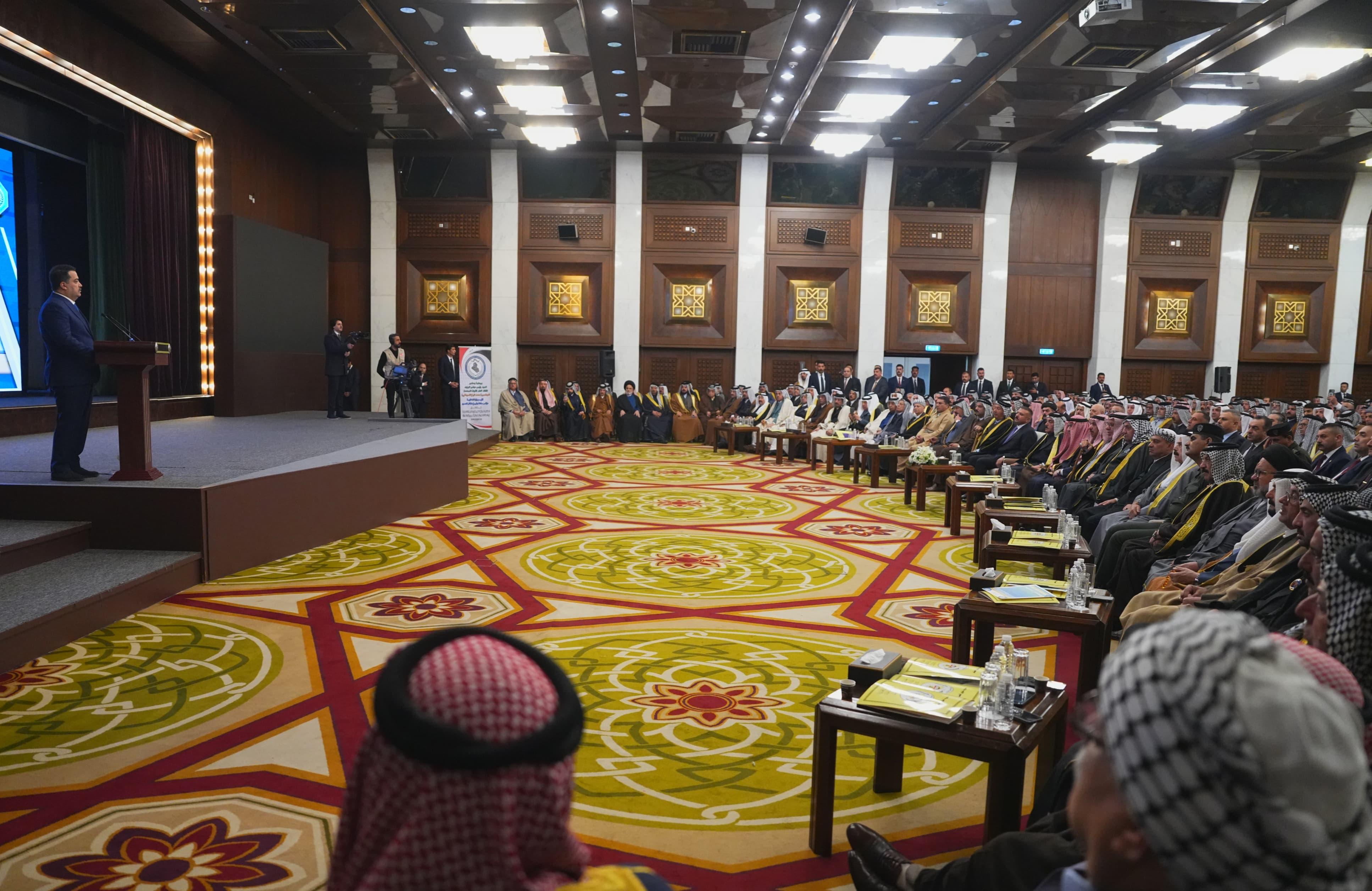 واكد أن “على العشائر التحرك بشكل حاسم لفض النزاعات التي يذهب ضحيتها الأبرياء، وإنهاء المظاهر السلبية، ويجب التعاون مع الأجهزة الأمنية لمحاسبة المسيئين وعدم احتضانهم وتقديمهم للعدالة، لأن أمن البلد فوق كل شيء”، مشيدا “بجهود وزارة الداخلية ومديرية العشائر فيها لما يقدمونه من اهتمام بعشائرنا الكريمة وزعمائها”.وبين السوداني ان “آفة المخدرات تفتك بالكثير من أبنائنا، وتسببت بتفشي الجريمة، ونعول على مشايخنا بإسناد الدولة في التصدي لها”، مؤكدا “يجب تحصين أبناء العشائر أمام الأصوات الداعية للفتنة، والتي تريد تمزيق نسيج بلدنا الاجتماعي لغايات طائفية أو عرقية”.واشار الى ان “الحكومة تعاملت مع تطورات المنطقة بمبدأ الحكمة من خلال المواقف والقوة في القرارات بعيداً عن الارتجال والانفعال”، معتبرا ان “سياسة الحكومة المتوازنة حصنت العراق وأبعدت عنه شبح العدوان والاحتراق بنار حرب أرادوها أن تحرق جميع بلدان المنطقة”.