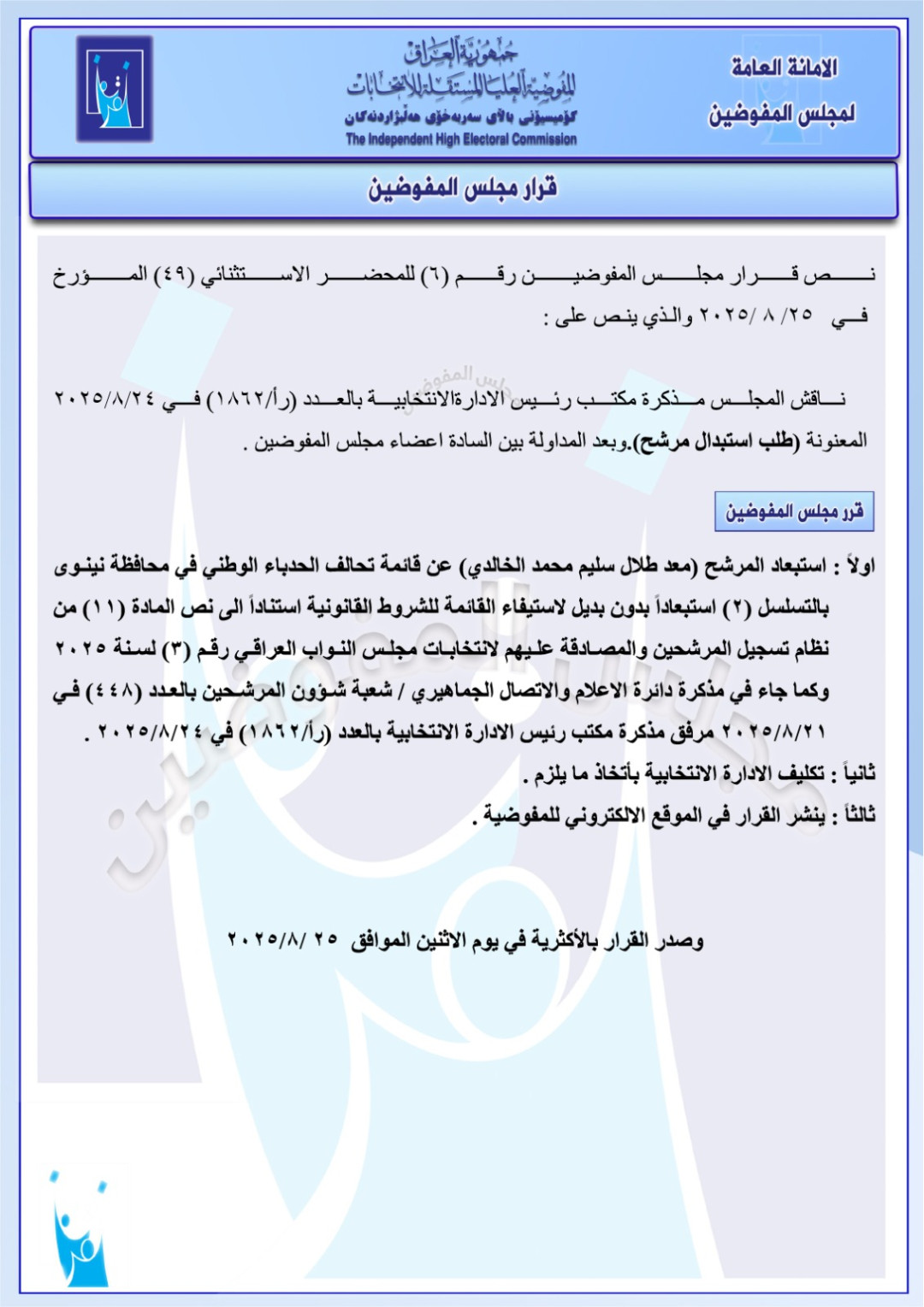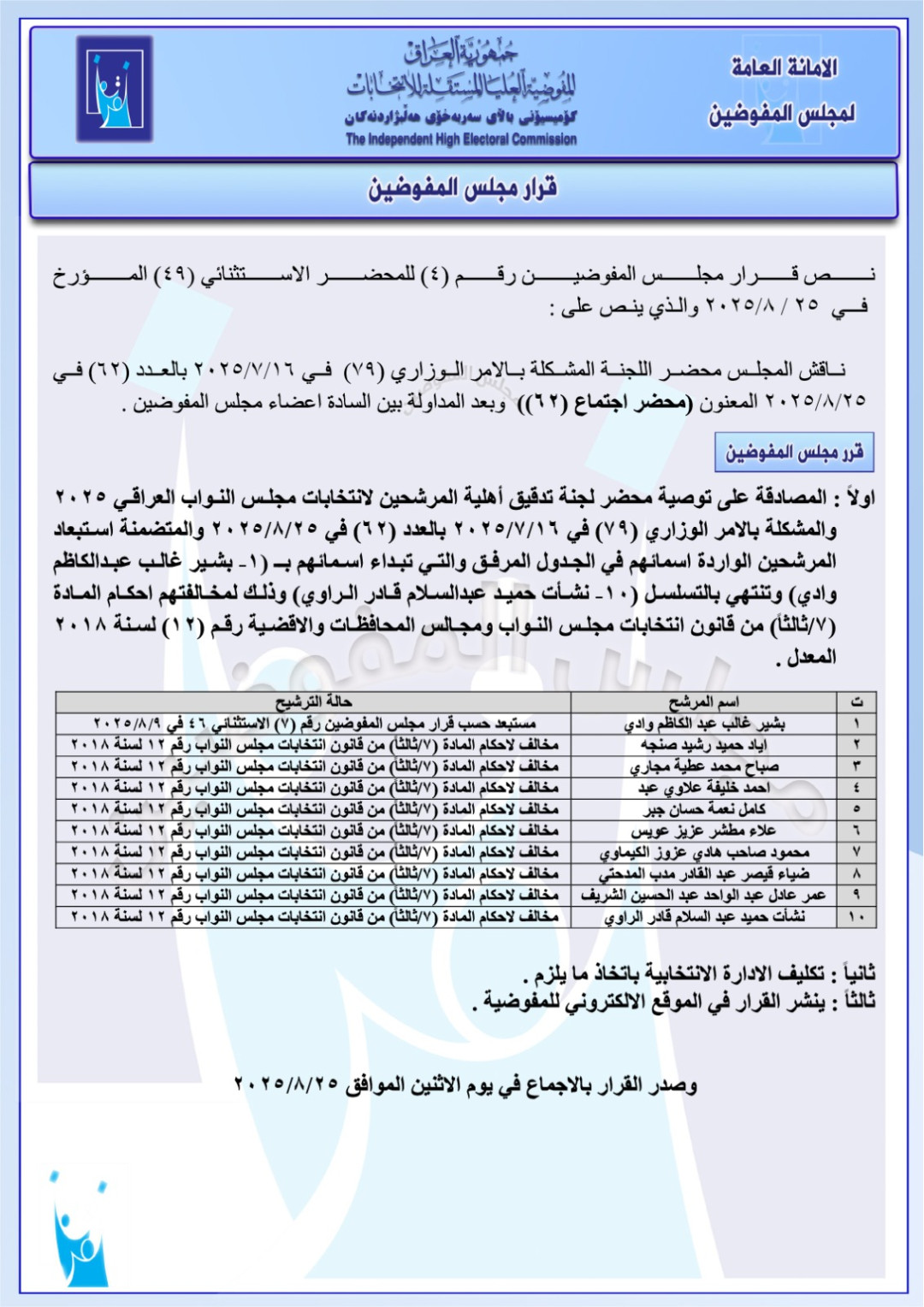 مفوضية الانتخابات تستبعد مجموعة جديدة من المرشحين للانتخابات