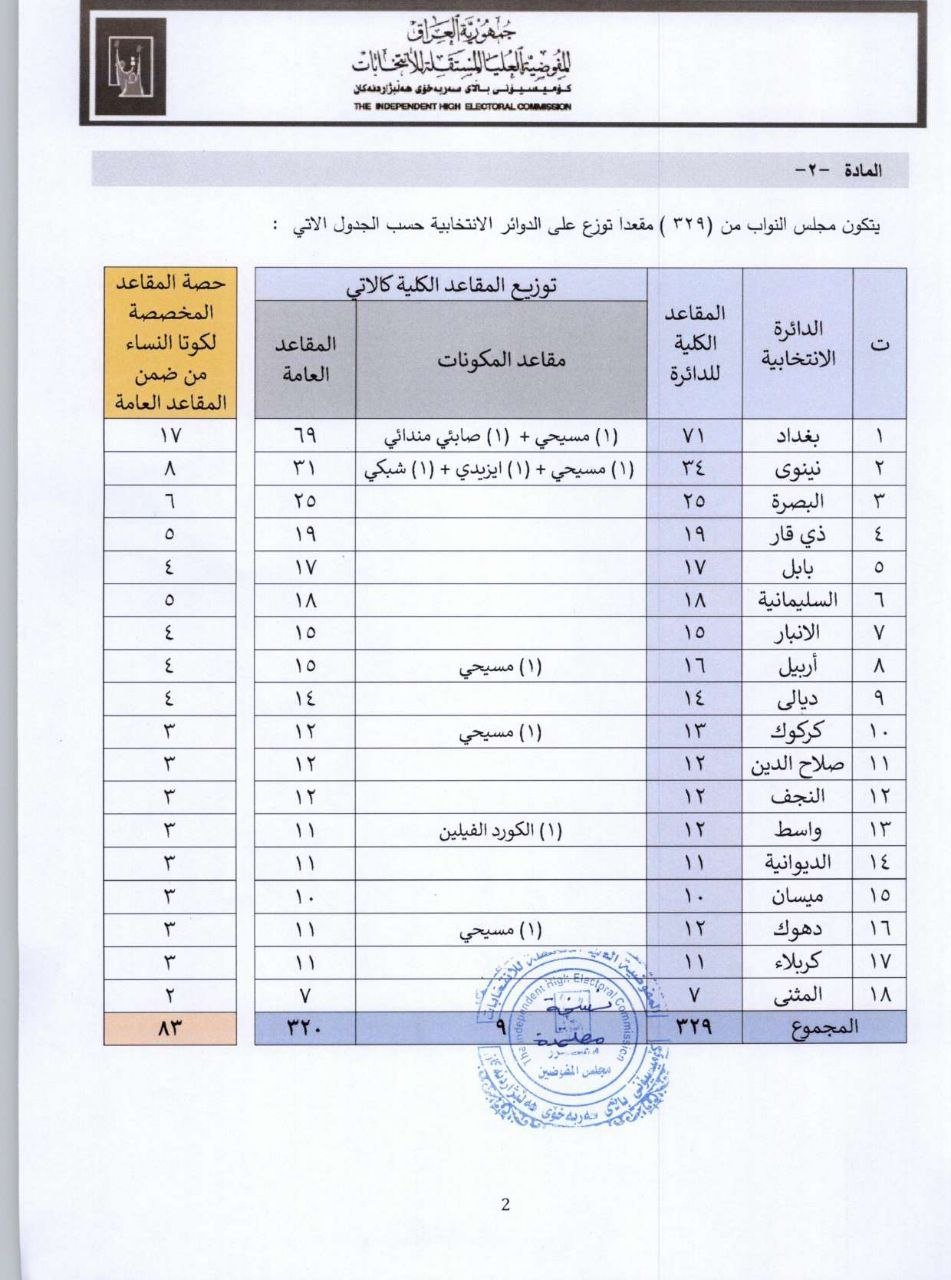 بغداد/ شبكة أخبار العراق- اعلنت المفوضية العليا المستقلة للانتخابات نظام توزيع المقاعد واستبدال الأعضاء لانتخابات مجلس النواب 2025.ونشرت المفوضية، الوثائق ادناه لبيان آلية توزيع المقاعد واستبدال الأعضاء لانتخابات مجلس النواب 2025: