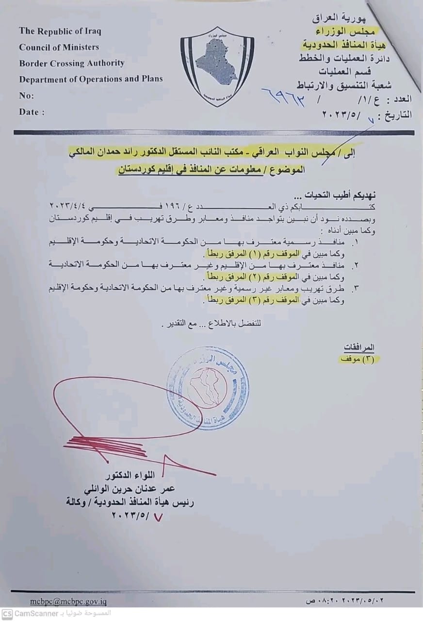 بالوثائق..نائب:(20) منفذ حدودي غير معترف بها من قبل الحكومة الاتحادية والإقليم