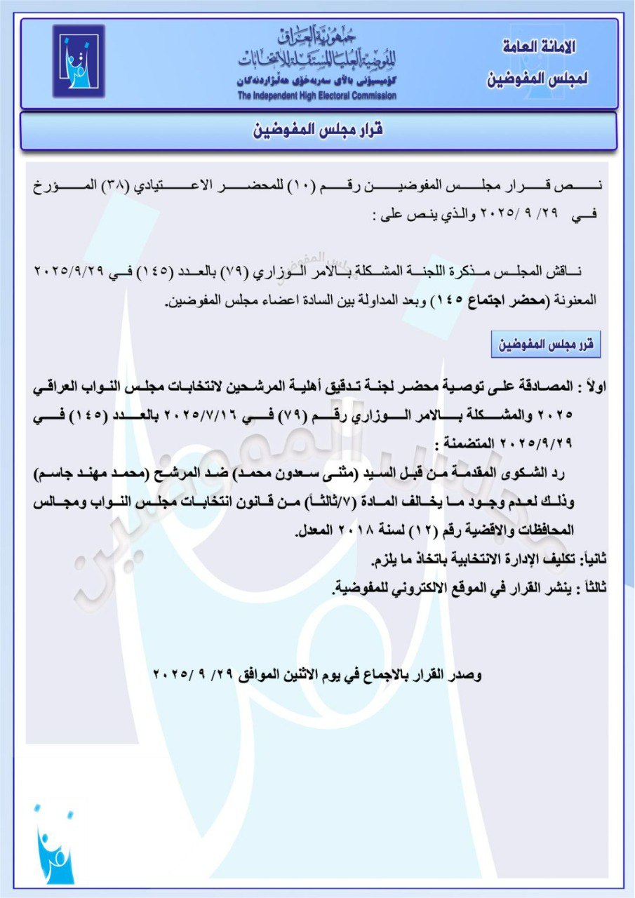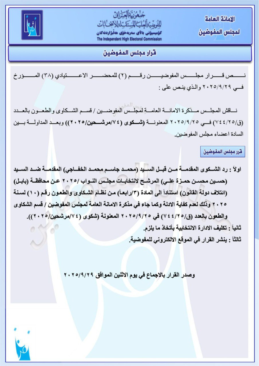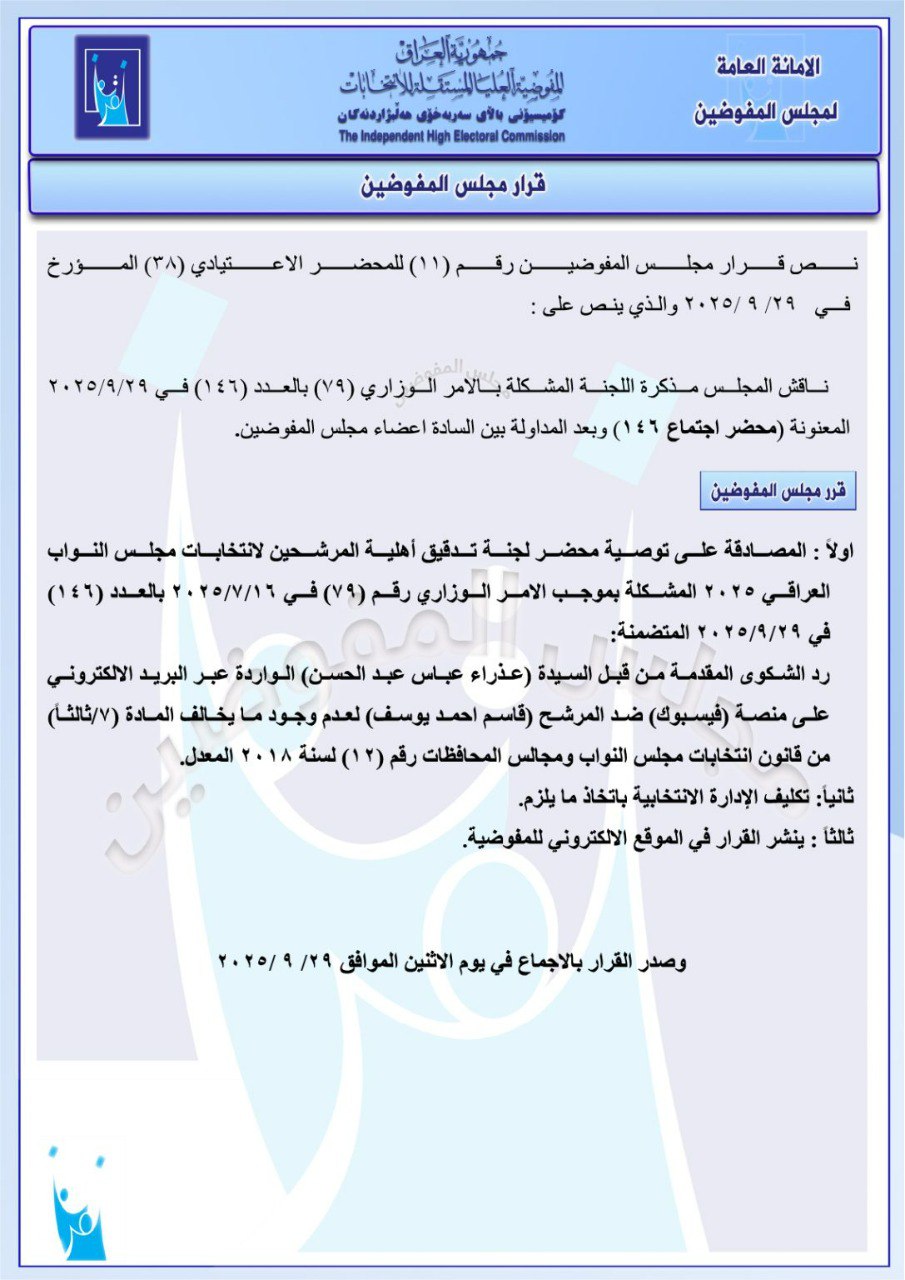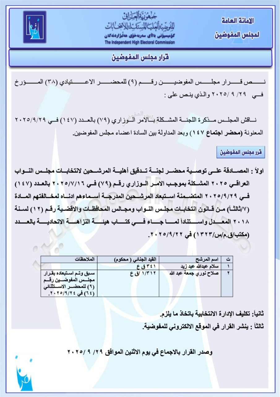 مفوضية الانتخابات تصدر عدة قرارات بشأن الاستبعاد وفرض الغرامات