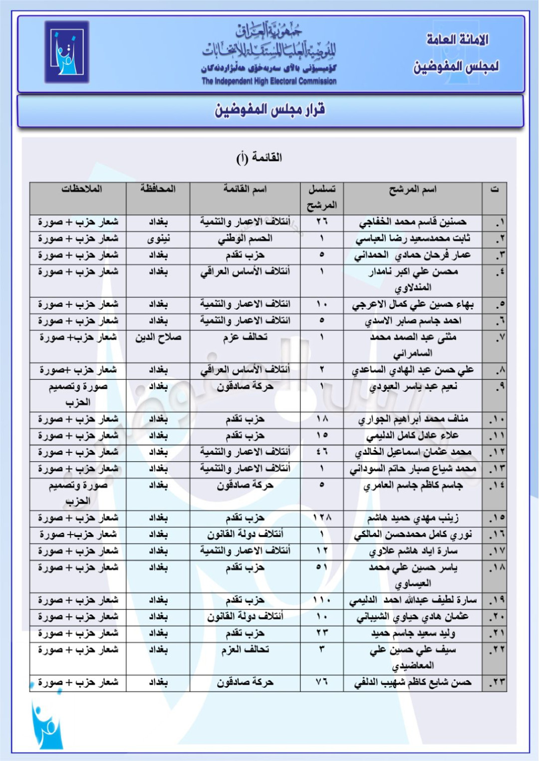 مفوضية الانتخابات تفرض غرامات مالية بحق بعض المرشحين المخالفين