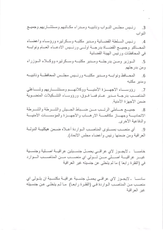 -ضمان الولاء الكامل للدولة العراقية من شاغلي المواقع الحساسة.