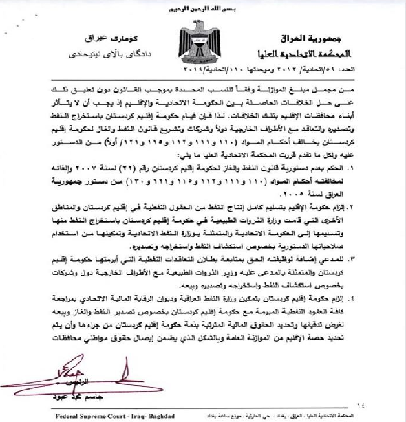بالوثائق..المحكمة الاتحادية تقرر عدم دستورية قانون النفط والغاز في الإقليم