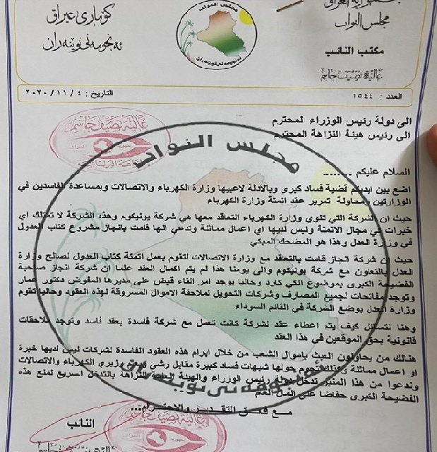 بالوثيقة..نائب يطالب الكاظمي بعدم التعاقد مع شركتين فاسدتين