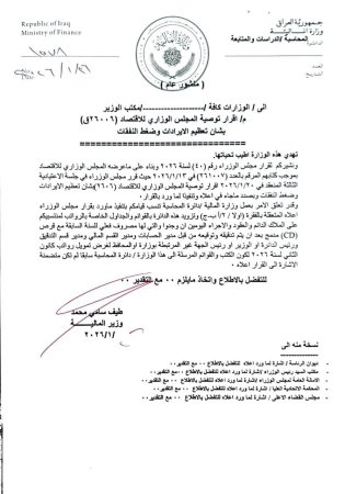 وزيرة المالية تطلب من الوزارات بتزويدها بقوائم رواتب منتسبيها